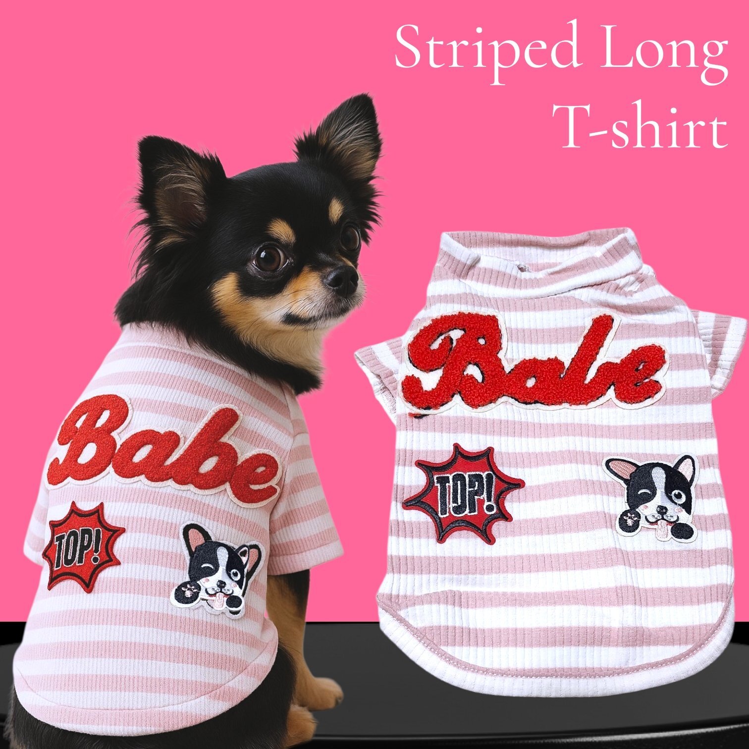 【特売品】犬服 可愛いボーダー半袖ワッペン Tシャツ