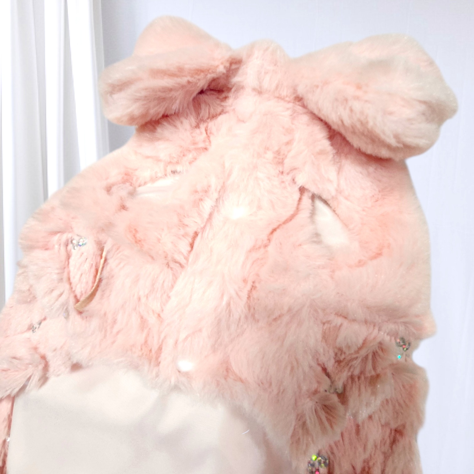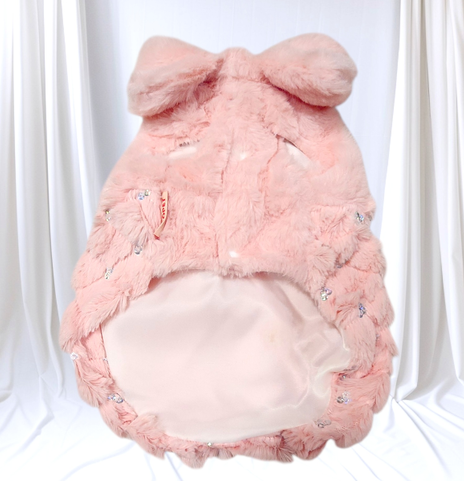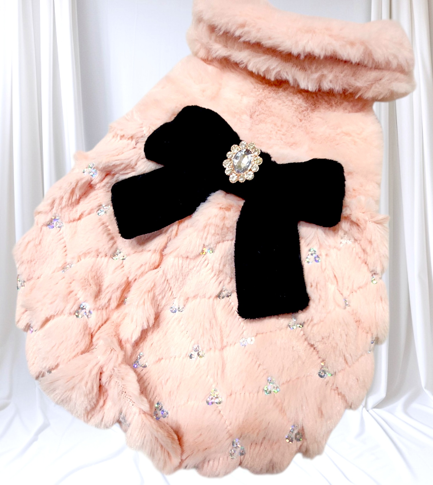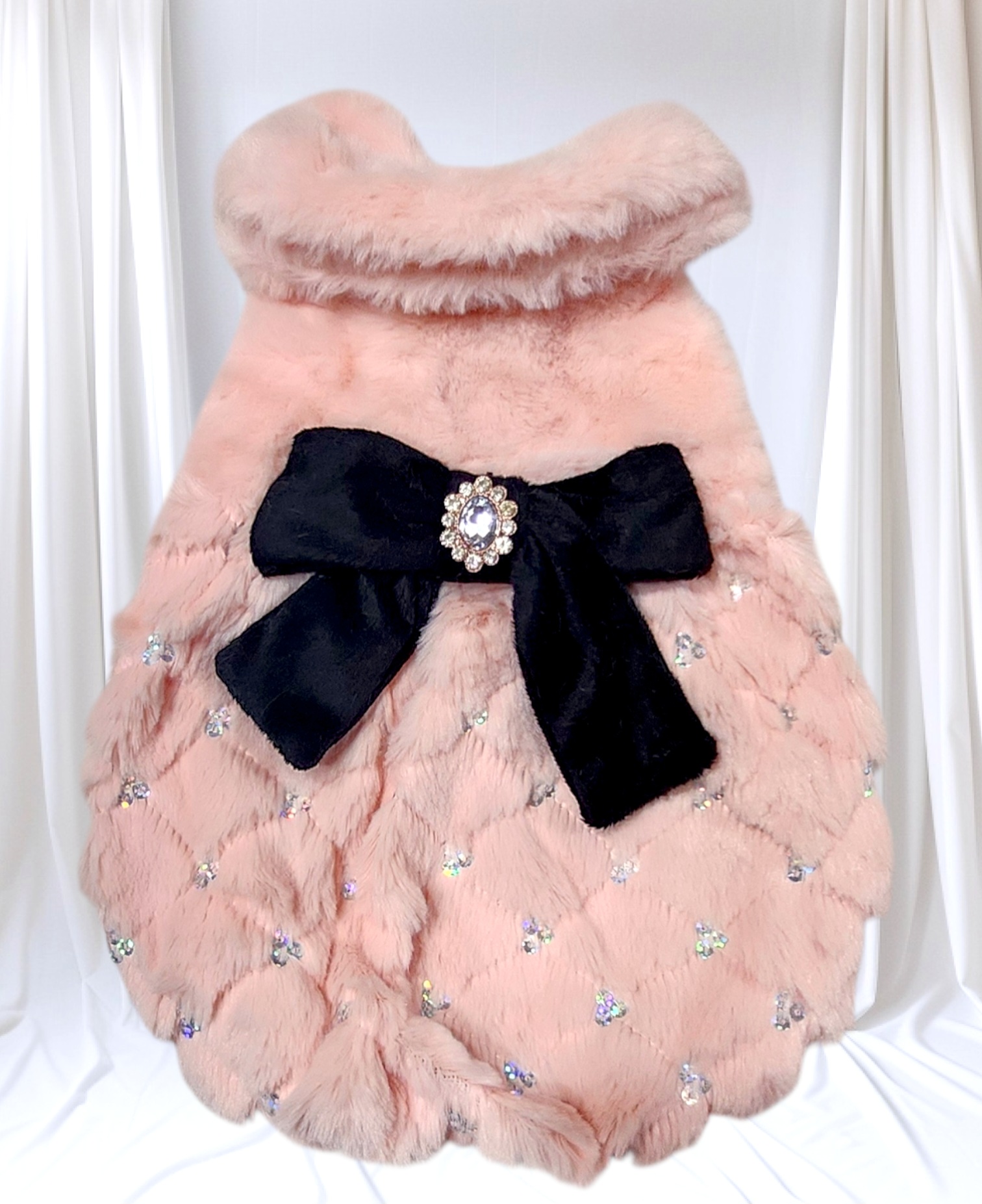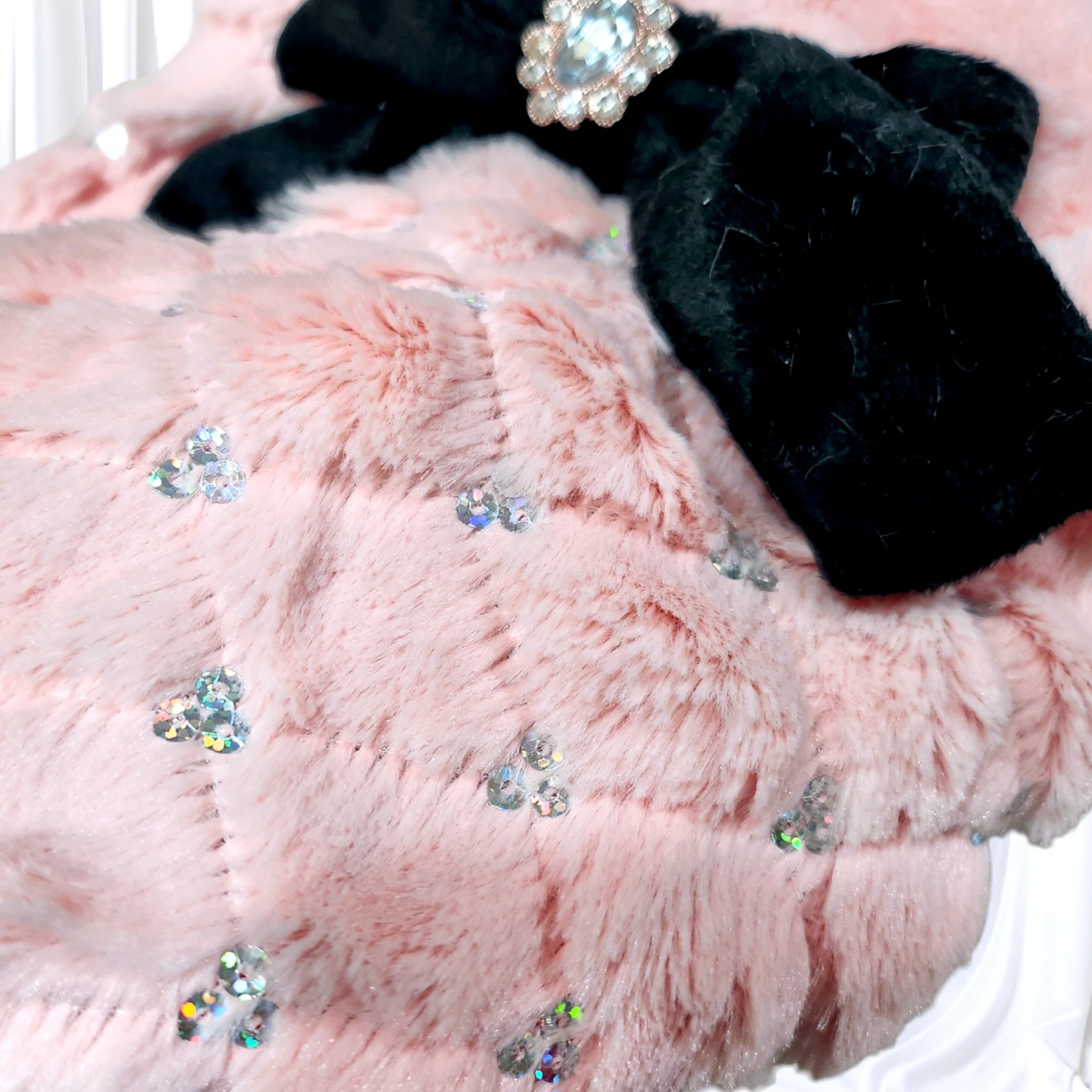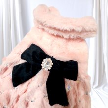 愛犬の服/ビジューリボン付暖かいフェイクファーのシンプルなコート!リボンを付けてエレガントに★防寒着