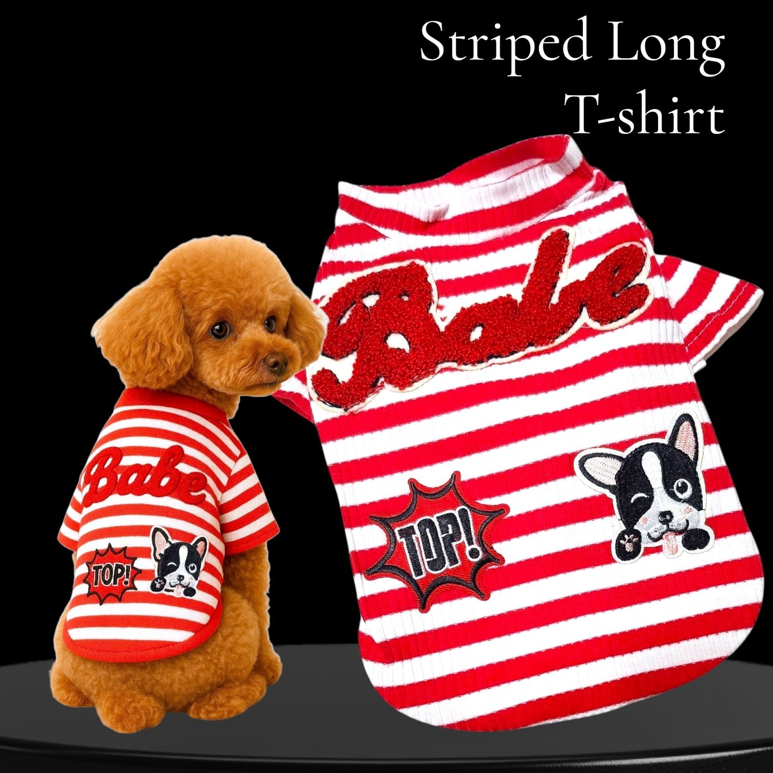 【特売品】犬服 可愛いボーダー半袖ワッペン Tシャツ